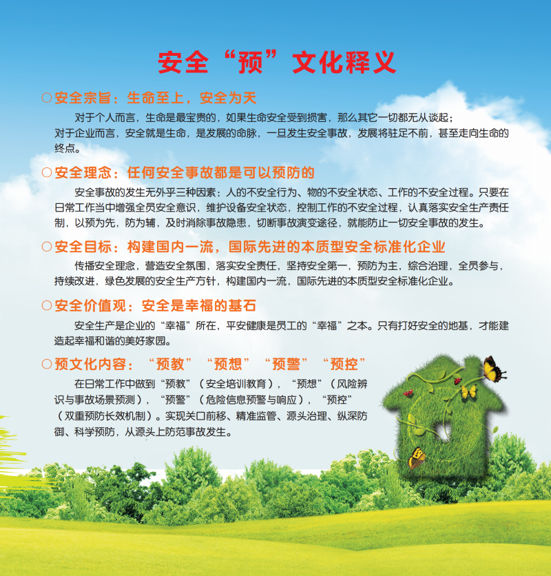 (二)執(zhí)行理念 發(fā)展理念:依托煤化優(yōu)勢 綠色穩(wěn)健發(fā)展 管理理念:人性化 精細化 規(guī)范化 市場理念:客戶是產(chǎn)品的終極裁判 品牌是企業(yè)成功的標志。 人才理念:多渠道選拔人才 每個崗位都可成才 成本理念:低成本就是核心競爭力 創(chuàng)新理念:處處都有提升空間 人人都是創(chuàng)新主體 安全理念:任何安全事故都是可以預(yù)防的 環(huán)保理念:踐行社會責(zé)任 打造綠色企業(yè) |