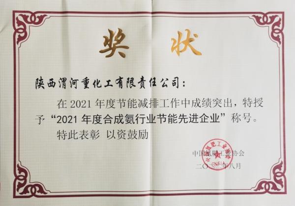 2022年8月公司榮獲2021年度合成氨行業(yè)節(jié)能先進企業(yè)