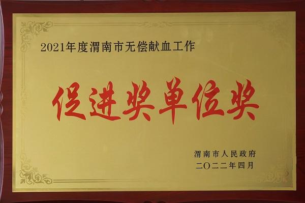 2022年4月公司榮獲2021年度渭南市無償獻血工作促進獎單位獎