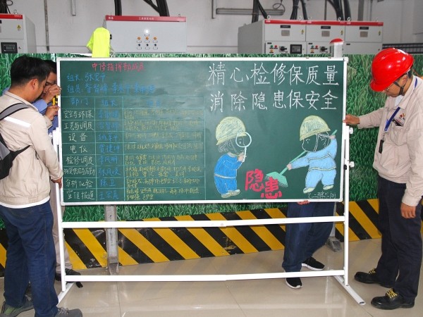 彬州公司中修現(xiàn)場(chǎng)如同一幅熱血畫卷:檢修人員在裝置間穿梭忙碌,汗水在工裝上映出鹽花;分析人員巾幗不讓須眉,俯身儀器前細(xì)心檢測(cè)作業(yè)環(huán)境;電儀人員穿梭線纜“密林”,專心致志保障企業(yè)供電安全。他們以工具為筆、安全帽為盾,用拼搏勾勒責(zé)任圖譜,讓每道工序都凝著匠心,每個(gè)眼神都燃著斗志,誓將中修硬仗鍛造成淬煉團(tuán)隊(duì)的最美勛章。