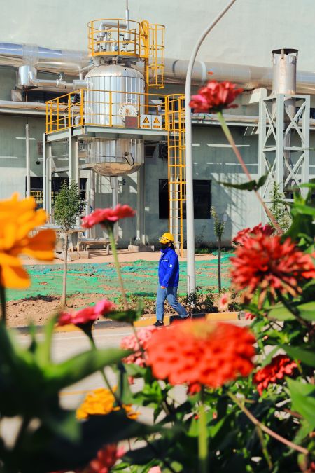 “萬(wàn)美之中秋為最”,秋不止在山村田野間路過,還停留在新民塬工業(yè)園區(qū)的每一處不起眼的角落里。漸漸泛黃的樹葉與銀白色的精餾塔形成鮮明的比照,愈發(fā)凸顯出藏在工業(yè)建筑里獨(dú)特的秋色;陽(yáng)光從金黃的樹隙間透過,散發(fā)著耀眼的光芒;道路兩旁,幾株不知名的野花努力地挽留著詩(shī)情畫意的秋天;工業(yè)的“高冷”與秋天的“詩(shī)情畫意”在這片土地上實(shí)現(xiàn)完美的交融,這便是藏在彬州化工里的秋色。
