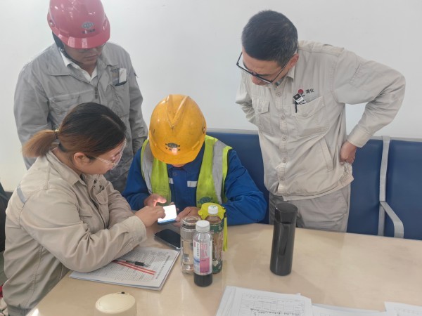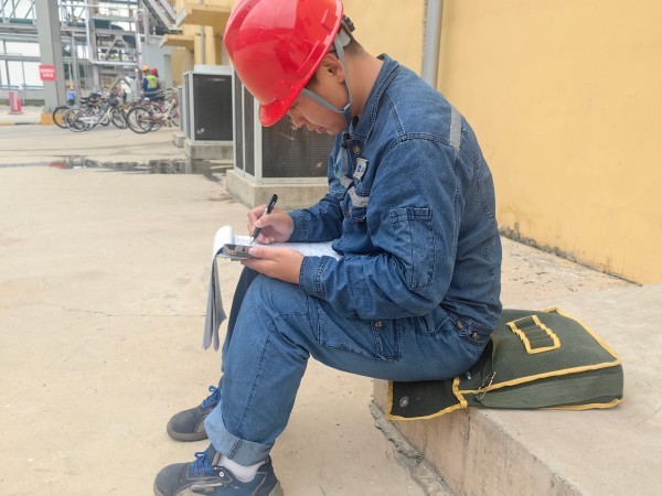 檢修人員現(xiàn)場(chǎng)書(shū)寫(xiě)