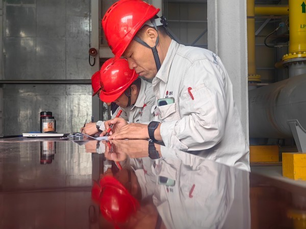 中修現(xiàn)場(chǎng),紙筆成為參檢人員的“戰(zhàn)斗利器”。動(dòng)火分析點(diǎn),他們圍在桌前,筆尖在紙上飛速滑動(dòng),精準(zhǔn)記錄設(shè)備參數(shù)與檢修節(jié)點(diǎn),每一份簽字與采樣分析,都成為了保障參檢人員的“守護(hù)符”。即使身在檢修現(xiàn)場(chǎng),沒(méi)有桌椅也趴在墻上逐字逐句校驗(yàn)。每一項(xiàng)簽字確認(rèn)都嚴(yán)謹(jǐn)對(duì)待,每一筆都透著對(duì)檢修工作的負(fù)責(zé)。這些紙筆間的默默耕耘,構(gòu)筑起中修守護(hù)的“無(wú)形防線”。