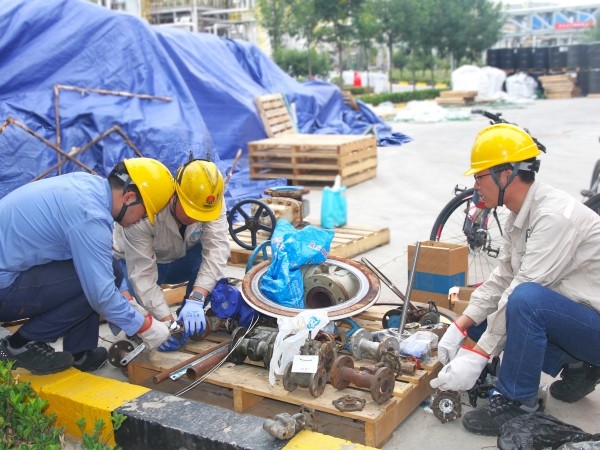 彬州公司中修現(xiàn)場(chǎng)如同一幅熱血畫卷:檢修人員在裝置間穿梭忙碌,汗水在工裝上映出鹽花;分析人員巾幗不讓須眉,俯身儀器前細(xì)心檢測(cè)作業(yè)環(huán)境;電儀人員穿梭線纜“密林”,專心致志保障企業(yè)供電安全。他們以工具為筆、安全帽為盾,用拼搏勾勒責(zé)任圖譜,讓每道工序都凝著匠心,每個(gè)眼神都燃著斗志,誓將中修硬仗鍛造成淬煉團(tuán)隊(duì)的最美勛章。